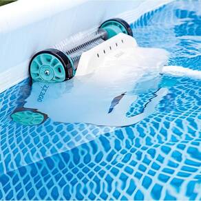 - mantém sua piscina limpa: potente sucção alimentada por água de 700 gal/hora; - drive para todas as rodas: tração em todas as rodas alimentada por água para uma ação de limpeza rápida e desempenho superior de escalada na parede; - bomba necessária: bomba intex com uma taxa de fluxo entre 1.600 a 3.500 gal/hora necessária; - dois esfregões: esfregões de sujeira rotativos duplos para limpeza até mesmo as melhores e difíceis de remover sujeira até a linha de água; - filtro de detritos: filtro de malha fina de 6ga (0,15 mm) para capturar até mesmo os melhores detritos; - recipiente de detritos de grande capacidade de 0,48 litros; - mangueira sem embaraçamento de 6,35 m; - operação lateral de pressão: engancha-se à entrada para água que volte para a piscina e usa a pressão da água (não com sucção) para operar; - para uso com piscinas acima do solo com forros de pvc e encaixes de entrada rosqueada de 3,8 cm; - não é adequado para piscinas ou piscinas intex easy set com anel superior inflável.