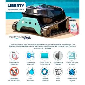 Robo limpador liberty 200 - sodramarconheça o robô liberty da sodramar, a inovação máxima em limpeza de piscinas. O dolphin liberty sodramar revoluciona a maneira como você mantém sua piscina limpa. Com seu design sem fio, ele elimina a necessidade de cabos de alimentação, proporcionando total liberdade de movimento ao equipamento. Esta simplicidade de operação o torna uma escolha perfeita para quem busca eficiência sem complicações.Alto desempenho em piscinas de até 10 metroso robô dolphin liberty sodramar é capaz de limpar piscinas de até 10 metros de comprimento em um ciclo de limpeza que dura até 2 horas e meia. Durante esse período, ele percorre todo o piso e as paredes da piscina, removendo sujeira, detritos e até mesmo pequenas partículas de forma eficaz. Sua tecnologia avançada de navegação permite que ele cubra cada centímetro da piscina, garantindo uma limpeza completa e homogênea.Filtro de alta capacidade: limpeza profunda e consistenteequipado com um filtro de alta capacidade, o dolphin liberty sodramar retém até as menores partículas de sujeira, deixando a água da sua piscina sempre limpa e saudável. Este filtro é capaz de capturar desde detritos maiores, como folhas e galhos, até partículas finas de poeira, garantindo uma qualidade de água superior. A manutenção do filtro também é simples e rápida, proporcionando mais praticidade no dia a dia. Homologação Anatel: 173242314103 Marca: Não Informado Ean: 7899005632353