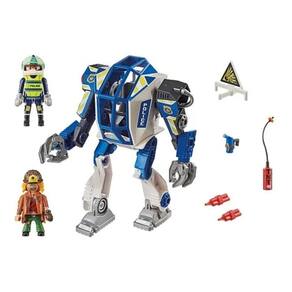Composto por um robô policial com pernas e braços móveis, o playset conta ainda com duas figuras Playmobil, um dispositivo explosivo, um sinal de alerta, capacete, luvas e muitos outros extras.