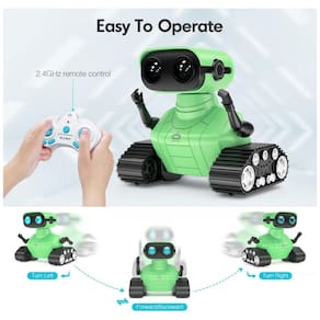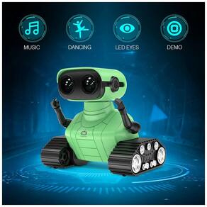 Robô multifuncional ao ligar o robô, os olhos de LED acendem e podem ser controlados pelo controle remoto, podendo ser fechados ou deixados piscando. O robô também possui função de voz e pode conversar em seu próprio idioma e cantar 3 músicas que podem ser trocadas pelo controle remoto. As trilhas do tanque permitem que o robô avance para trás, para a esquerda e para a direita. Quando mudado para o modo de demonstração, o robô começa a dançar