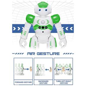 Controle remoto e controle de gestos manuais este robô sensível a gestos não só pode ser controlado pelo controlador infravermelho, mas também pode virar à esquerda, virar à direita, deslizar para trás e deslizar para frente de acordo com os comandos do seu gesto manual. A multifunção inclui exibição automática e prevenção de obstáculos também. Os olhos do robô de brinquedo se iluminam com um LED azul brilhante quando ele se move. Programação inteligente este brinquedo robô inteligente pode demonstrar um conjunto de 50 ações inseridas pelo usuário. vire à direita ande para frente ande para trás patrulha dance e muitos outros modos de ação que você selecionou. Material premium e ecológico este robô de controle remoto é feito de plástico ABS não tóxico e durável, com articulações flexíveis nos ombros, cotovelos e polegares, e as rodas de patinação inferiores são bastante resistentes para realizar várias combinações de movimentos. Este robô brincalhão realmente entretém seus filhos e traz alegrias sem fim. Convenient Rechargeable Robot Toy este robô RC é alimentado por baterias embutidas. Conecte se diretamente à interface de carregamento USB como seu banco de energia, plugue, computadores. seu tempo de reprodução é de cerca de 60 minutos Marca: Não Informado
