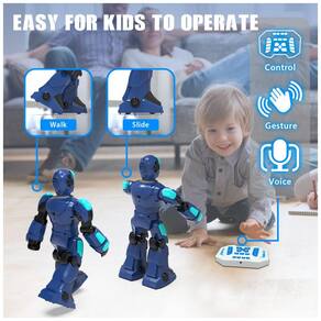 Robô de controle de voz este robô STEMTRON RC com sistema inteligente de controle de voz. Robôs falantes inteligentes como Parceiro e Professor inteligente com 10 comandos de voz. Controle remoto e detecção de gestos o robô STEMTRON pode ser controlado por controle remoto sem fio e também suporta detecção de gestos, pode sentir o movimento de suas mãos para virar à esquerda , direita, deslizar e caminhar para frente , para trás. Robô Inteligente Programável Motores potentes integrados garantem uma programação suave. Este robô interativo será reproduzido usando a função de arquivo para reproduzir suas ações editadas. São 5 histórias, 8 canções, 4 músicas de dança, 5 poesias, 5 piadas e 8 linguagens de máquina. Brinquedos Robô Recarregáveis USB Este robô eletrônico é alimentado pela bateria embutida, que possui um soquete USB que pode se conectar diretamente ao seu computador de mesa, notebook, fonte de alimentação móvel, adaptador de energia USB ou conectar a fonte de alimentação através do Plugue USB. Leva apenas 1 hora de carregamento, você e seus filhos podem desfrutar de cerca de 60 minutos de diversão Marca: Não Informado