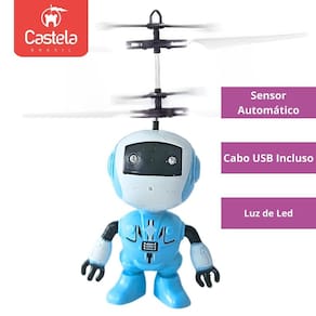 Robozinho Azul Brinquedo Voador Sensor De Mão Luz - Castela DESCRIÇÃO DO PRODUTO