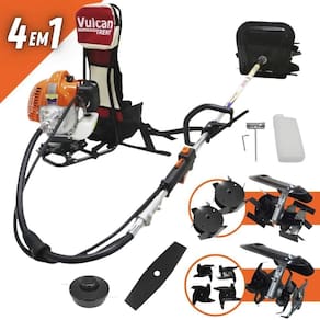 Roçadeira Costal Multifuncional Vulcan VRC430 2T 43CC 1,7HP Modelo Completo Com Enxada Capinadeira e Enxada Cultivadora