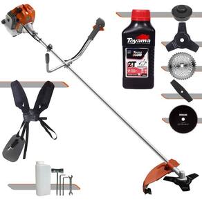 Com guidão ergonômico lateral, permite um alcance amplo e maior mobilidade, capaz de aumentar a produtividade diária. Possui motor 2 tempos á gasolina, de 51,6 Cilindradas (52cc) 13.000 de rotação 2,0 HP de potência que proporcionam maior performance e economia na operação. Seu conjunto de acessórios inclui kit de ferramentas, cinto de suporte duplo almofadado, carretel de nylon e lâmina de corte 3 pontas.