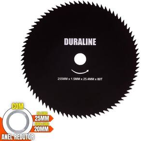 O DISCO DE CORTE 80 Dentes acompanha um anel de redução que pode ser utiizada para roçadeiras de furo 20mm ou 25mm, sendo feita em aço cromo vanádio que garante mais , desempenho e durabilidade. É uma lâmina balanceada, fazendo com que haja menor vibração, corte contínuo e suave, com mais conforto ao operador e mais longevidade para a roçadeira. Possui maior rendimento no trabalho e não precisa ser afiada antes do uso. É um disco multiuso pois pode ser aplicado para diferentes trabalhos, tendo em vista que pode serrar madeiras até 10cm.