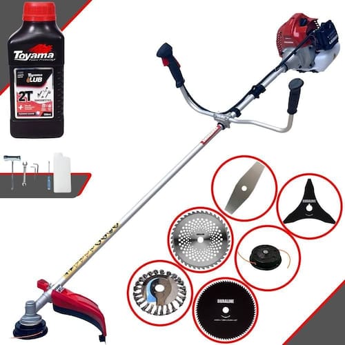 Roçadeira Profissional À Gasolina Kawashima BCJ 521L 52CC 2,5HP 2T + Faca 3 Pontas 255mm + Faca 40 Dentes 255mm + Faca 80 Dentes 255mm + Escova Rotativa 24 cerdas + Óleo Toyama FG50 500ml