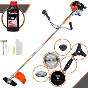 Roçadeira Lateral Vulcan VR430S À Gasolina 2 Tempos 43cc 1,7HP + Faca 3 Pontas 255mm + Faca 40 Dentes 255mm + Faca 80 Dentes 255mm + Escova Rotativa 200mm 38 Cerdas + Óleo TOYAMA LUB FG50 500ml 2T