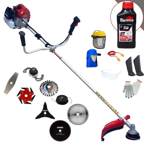 Roçadeira Profissional À Gasolina Kawashima BCJ 521L 52CC 2,5HP 2T + Faca 3 Pontas + Faca 40 Dentes + Faca 80 Dentes + Escova Rotativa 24 cerdas + Trimmer + Faca 6 Pontas + Óleo Toyama FG50 500ml + Kit EPI Completo