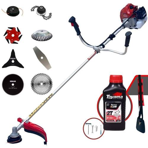 Roçadeira Profissional À Gasolina Kawashima BCJ 431L 42,7CC 1,7HP 2T + Faca 3 Pontas + Faca 6 Pontas + Faca 40 Dentes + Faca 80 Dentes + Trimmer + Escova 38 Cerdas + Óleo Toyama FG50 500ml