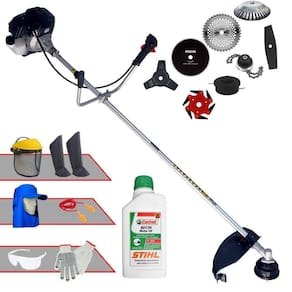 Roçadeira Profissional À Gasolina Toyama RT43L-B-25A 43cc 1,7HP 2T Com Lâmina 3 Pontas + Faca 2 Pontas 330mm + Faca 40 Dentes 255mm + Faca 80 Dentes 255mm + Faca 6 Pontas 250mm + Trimmer + Escova Rotativa 200mm 38 Cerdas + Óleo Castrol Stihl 500ml + Kit EPI Completo