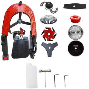 Roçadeira Profissional À Gasolina Toyama RT43L 43cc 1,7HP 2T Com Lâmina 3 Pontas + Faca 2 Pontas 330mm + Faca 40 Dentes 255mm + Faca 80 Dentes 255mm + Faca 6 Pontas 250mm + Trimmer + Escova Rotativa 200mm 38 Cerdas + Óleo Castrol Stihl 500ml