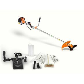INCLUSO: Carretel de nylon; Lâmina de corte 3 pontas; Cinto de Suporte; Misturador de gasolina e óleo; Kit de ferramentas para Manutenção.