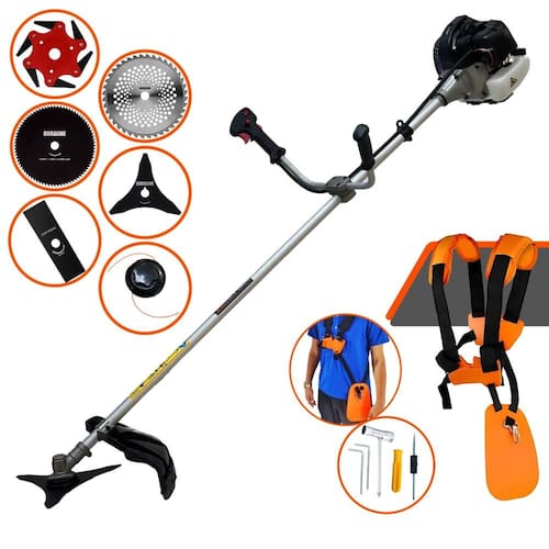 Roçadeira Lateral ANMAX CG430B À Gasolina 2 Tempos 43cc 1,7HP + Faca 3 Pontas 255m + Faca 40 Dentes 255mm + Faca 80 Dentes 255mm + Faca 6 Pontas 250mm