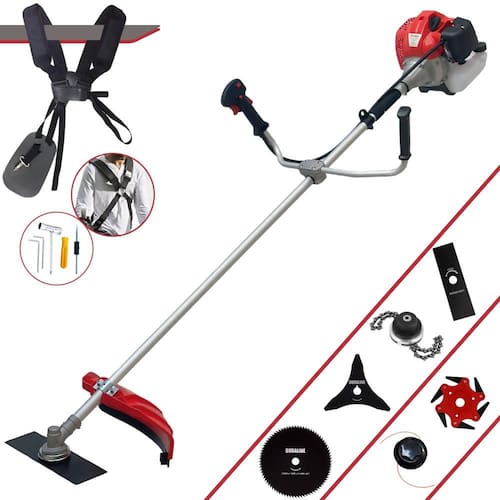 Roçadeira Lateral ANMAX CG520P-TB Plus À Gasolina 2 Tempos 52cc 2,2HP + Faca 3 Pontas 255m + Faca 80 Dentes 255mm + Trimmer + Faca 6 Pontas 250mm