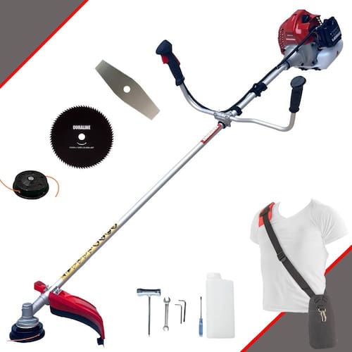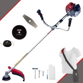 Com guidão ergonômico lateral, permite um alcance amplo e maior mobilidade, capaz de aumentar a produtividade diária. Possui motor 2 tempos á gasolina, de 43 Cilindradas; 1,7HP de potência que proporcionam maior performance e economia na operação. Seu conjunto de acessórios inclui kit de ferramentas, cinto de suporte almofadado, carretel de nylon e lâmina de corte 3 pontas.