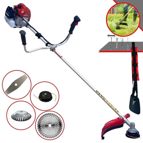 Com guidão ergonômico lateral, permite um alcance amplo e maior mobilidade, capaz de aumentar a produtividade diária. Possui motor 2 tempos á gasolina, de 43 Cilindradas; 1,7HP de potência que proporcionam maior performance e economia na operação. Seu conjunto de acessórios inclui kit de ferramentas, cinto de suporte almofadado, carretel de nylon e lâmina de corte 3 pontas.