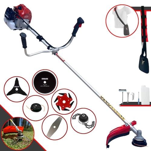 Com guidão ergonômico lateral, permite um alcance amplo e maior mobilidade, capaz de aumentar a produtividade diária. Possui motor 2 tempos á gasolina, de 43 Cilindradas; 1,7HP de potência que proporcionam maior performance e economia na operação. Seu conjunto de acessórios inclui kit de ferramentas, cinto de suporte almofadado, carretel de nylon e lâmina de corte 3 pontas.