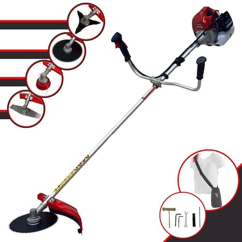 Com guidão ergonômico lateral, permite um alcance amplo e maior mobilidade, capaz de aumentar a produtividade diária. Possui motor 2 tempos á gasolina, de 62 Cilindradas; 3HP de potência que proporcionam maior performance e economia na operação. Seu conjunto de acessórios inclui kit de ferramentas, cinto de suporte almofadado, carretel de nylon e lâmina de corte 3 pontas.