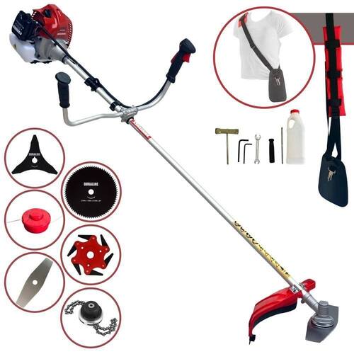 Com guidão ergonômico lateral, permite um alcance amplo e maior mobilidade, capaz de aumentar a produtividade diária. Possui motor 2 tempos á gasolina, de 62 Cilindradas; 3HP de potência que proporcionam maior performance e economia na operação. Seu conjunto de acessórios inclui kit de ferramentas, cinto de suporte almofadado, carretel de nylon e lâmina de corte 3 pontas.