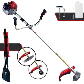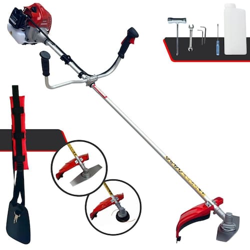 Com guidão ergonômico lateral, permite um alcance amplo e maior mobilidade, capaz de aumentar a produtividade diária. Possui motor 2 tempos á gasolina, de 43 Cilindradas; 1,7HP de potência que proporcionam maior performance e economia na operação. Seu conjunto de acessórios inclui kit de ferramentas, cinto de suporte almofadado, carretel de nylon e lâmina de corte 3 pontas.