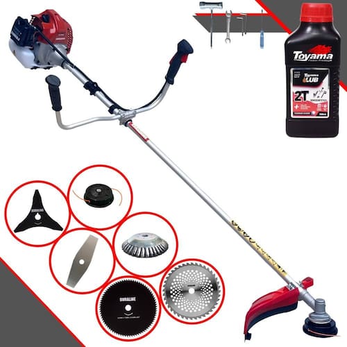 Roçadeira À Gasolina Kawashima BCJ 431L 42,7CC 1,7HP 2T + Faca 3 Pontas  + Faca 40 Dentes  + Faca 80 Dentes  + Escova 38 Cerdas + Óleo Toyama FG50 500ml