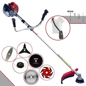 Com guidão ergonômico lateral, permite um alcance amplo e maior mobilidade, capaz de aumentar a produtividade diária. Possui motor 2 tempos á gasolina, de 52 Cilindradas; 2,5HP de potência que proporcionam maior performance e economia na operação. Seu conjunto de acessórios inclui kit de ferramentas, cinto de suporte almofadado, carretel de nylon e lâmina de corte 3 pontas.