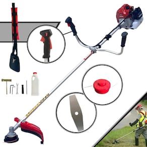 Com guidão ergonômico lateral, permite um alcance amplo e maior mobilidade, capaz de aumentar a produtividade diária. Possui motor 2 tempos á gasolina, de 62 Cilindradas; 3HP de potência que proporcionam maior performance e economia na operação. Seu conjunto de acessórios inclui kit de ferramentas, cinto de suporte almofadado, carretel de nylon e lâmina de corte 3 pontas.