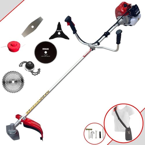 Com guidão ergonômico lateral, permite um alcance amplo e maior mobilidade, capaz de aumentar a produtividade diária. Possui motor 2 tempos á gasolina, de 62 Cilindradas; 3HP de potência que proporcionam maior performance e economia na operação.Seu conjunto de acessórios inclui kit de ferramentas, cinto de suporte almofadado, carretel de nylon e lâmina de corte 3 pontas.