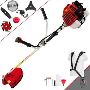 Roçadeira Lateral Kawashima KW43-L À Gasolina 2T 43cc 1,7HP Com Lâmina 3 Pontas + Faca 2 Pontas 330mm + Faca 40 Dentes 255mm + Trimmer + Faca 6 Pontas 250mm