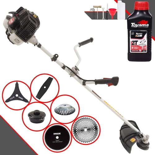 Roçadeira À Gasolina Kawashima KW43LE 43cc Com Carretel, Faca 2 Pontas, Faca 3 Pontas, Faca 40 Dentes, Faca 80 Dentes + Escova de Aço + ÓLEO TOYAMA