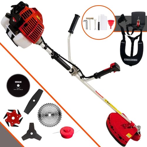 A Roçadeira Kawashima KW52L conta com motor 2 tempos à gasolina, 52 cilindradas e potência de 2,5HP. Projetada para facilitar o trabalho de roçada de capim, arbustos, pastagens, controle de pastos, trabalhos de jardinagem, limpeza e manutenção de grandes áreas verdes com sua utilização em sítios; fazendas e chácaras. Ideal também para manutenção e limpeza de vias públicas e rodovias. Desenvolvida com uma estrutura resistente e suporte do guidão reforçado, seus componentes possuem alta durabilidade. A vantagem da roçadeira é que pode ser usada em locais irregulares, morros, buracos, florestas, entre outro com dificuldade de acesso. Produto de alta qualidade, desempenho e durabilidade.