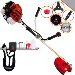 Roçadeira Lateral Kawashima KW52-L À Gasolina 2T 52c 2,5HP Com Lâmina 3 Pontas + Faca 2 Pontas 330mm + Faca 40 Dentes 255mm + Faca 80 Dentes 255mm