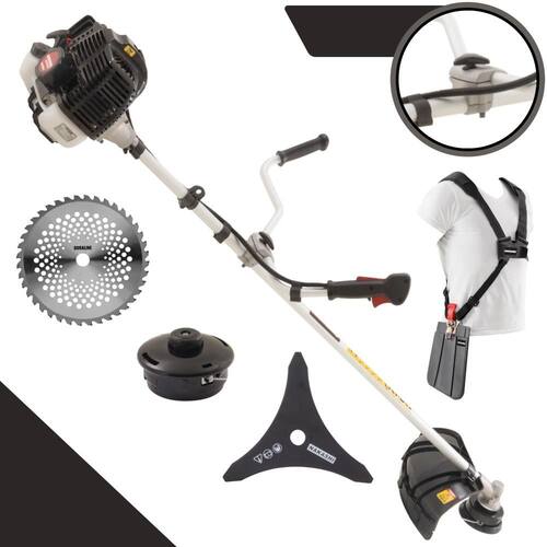 Roçadeira À Gasolina Kawashima KW52LE 52cc 2,5HP de Potência 2 Tempos Alta Rotação Completa Com Carretel Nylon + Faca 3 Pontas + Faca 40 Dentes Vídea