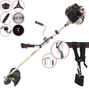 Roçadeira Kawashima KW52-LE À Gasolina 2T 52cc 2,5HP Com Lâmina 3 Pontas + Faca 2 Pontas 330mm 2,7mm + Faca 40 Dentes 255mm 2mm + Faca 80 Dentes 255mm 1,5mm + Trimmer