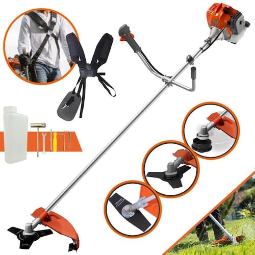 Com guidão ergonômico lateral, permite um alcance amplo e maior mobilidade, capaz de aumentar a produtividade diária. Possui motor 2 tempos á gasolina, de 42,7 Cilindradas (43cc) 9.000 de rotação 1,7HP de potência que proporcionam maior performance e economia na operação. Seu conjunto de acessórios inclui kit de ferramentas, cinto de suporte duplo almofadado, carretel de nylon e lâmina de corte 3 pontas.