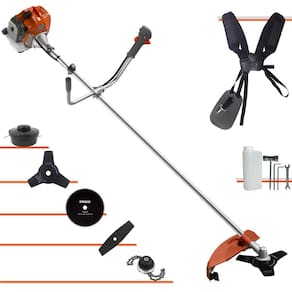 Com guidão ergonômico lateral, permite um alcance amplo e maior mobilidade, capaz de aumentar a produtividade diária. Possui motor 2 tempos á gasolina, de 51,6 Cilindradas (52cc) 13.000 de rotação 2,0 HP de potência que proporcionam maior performance e economia na operação.Seu conjunto de acessórios inclui kit de ferramentas, cinto de suporte duplo almofadado, carretel de nylon e lâmina de corte 3 pontas.