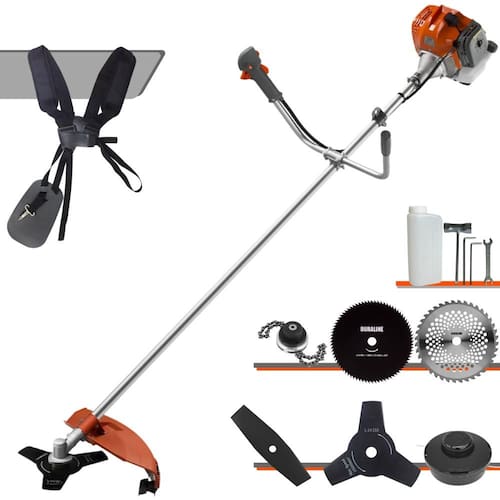 Com guidão ergonômico lateral, permite um alcance amplo e maior mobilidade, capaz de aumentar a produtividade diária. Possui motor 2 tempos á gasolina, de 51,6 Cilindradas (52cc) 13.000 de rotação 2,0 HP de potência que proporcionam maior performance e economia na operação.Seu conjunto de acessórios inclui kit de ferramentas, cinto de suporte duplo almofadado, carretel de nylon e lâmina de corte 3 pontas.