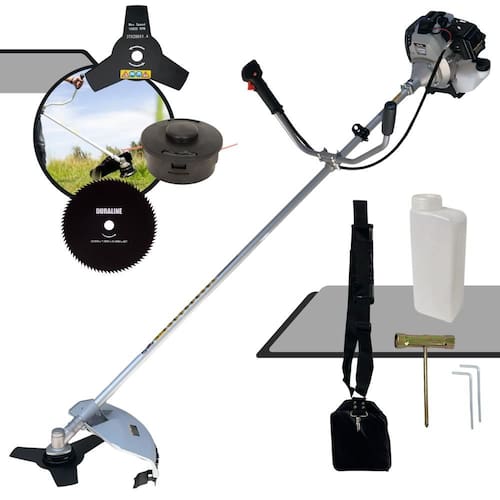 Com guidão ergonômico lateral, permite um alcance amplo e maior mobilidade, capaz de aumentar a produtividade diária. Possui motor 2 tempos á gasolina, de 42,7 Cilindradas, 12.000 de rotação 1,7HP de potência que proporcionam maior performance e economia na operação.Seu conjunto de acessórios inclui kit de ferramentas, cinto de suporte almofadado, carretel de nylon e lâmina de corte 3 pontas.
