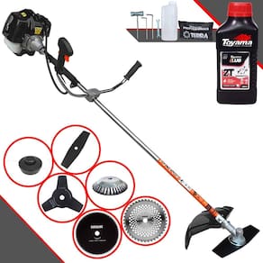 Roçadeira Lateral Terra GRH-520 Black À Gasolina 2 Tempos 52cc 2,5HP + Faca 3 Pontas 255mm 2,9mm + Faca 40 Pontas 255mm 2mm + Faca 80 Pontas 255mm 1,5mm + Escova Rotativa 200mm 38 Cerdas + ÓLEO TOYAMA LUB FG50 500ml 2T