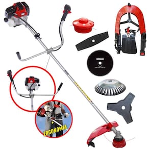 Roçadeira À Gasolina Toyama RT43L 43cc 1,7HP 2T Com Lâmina 3 Pontas + Faca 2 Pontas 330mm + Faca 80 Dentes 255mm + Escova Rotativa 38 Cerdas