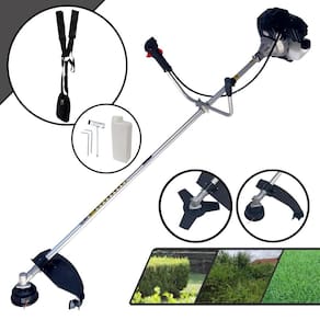 Com guidão ergonômico lateral, permite um alcance amplo e maior mobilidade, capaz de aumentar a produtividade diária. Possui motor 2 tempos á gasolina, de 43 Cilindradas, 10.000 de rotação 1,7HP de potência que proporcionam maior performance e economia na operação.Seu conjunto de acessórios inclui kit de ferramentas, cinto de suporte duplo almofadado, carretel de nylon e lâmina de corte 3 pontas.
