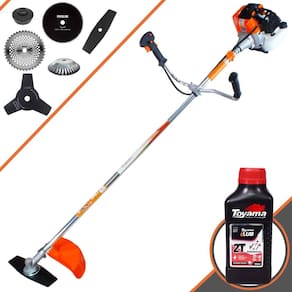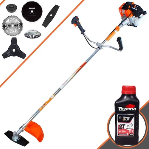 Roçadeira Lateral Vulcan VR430S À Gasolina 2 Tempos 43cc 1,7HP + Faca 3 Pontas 255mm + Faca 40 Dentes 255mm + Faca 80 Dentes 255mm + Escova Rotativa 200mm 38 Cerdas + Óleo TOYAMA LUB FG50 500ml 2T