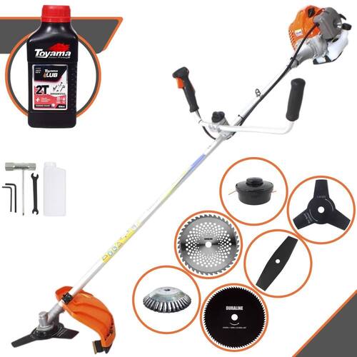 Roçadeira Lateral Vulcan VR430P À Gasolina 2 Tempos 43cc 1,7HP + Faca 2 Pontas 330mm + Faca 40 Dentes 255mm + Faca 80 Dentes 255mm + Escova rotativa 38 cerdas;+ Óleo TOYAMA LUB FG50 500ml 2T