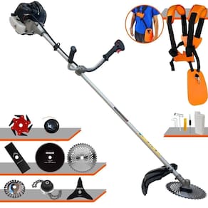 Roçadeira Lateral ANMAX CG430B À Gasolina 2 Tempos 43cc 1,7HP + Faca 3 Pontas 255m + Faca 6 Pontas 250mm + Faca 40 Dentes 255mm + Faca 80 Dentes 255mm + Escova Rotativa 24 cerdas + Trimmer