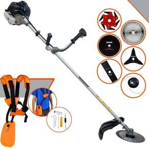 Roçadeira Lateral ANMAX CG430B À Gasolina 2 Tempos 43cc 1,7HP + Faca 3 Pontas 255m + Faca 40 Dentes 255mm + Faca 80 Dentes 255mm + Faca 6 Pontas 250mm