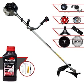 Roçadeira Lateral ANMAX CG430B À Gasolina 2 Tempos 43cc 1,7HP + Faca 3 Pontas 255m + Faca 6 Pontas 250mm + Faca 40 Dentes 255mm + Faca 80 Dentes 255mm + Escova Rotativa 24 cerdas + Trimmer + Óleo TOYAMA LUB FG50 500ml 2T
