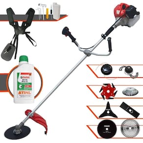 Roçadeira Profissional Lateral ANMAX CG430P À Gasolina 2 Tempos 43cc 2HP + Faca 3 Pontas 255m + Faca 40 Dentes 255mm + Faca 80 Dentes 255mm + Trimmer + Escova Rotativa 38 cerdas + Faca 6 Pontas + Óleo Castrol Stihl 500ml