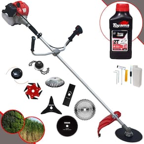 Roçadeira Lateral ANMAX CG430P À Gasolina 2 Tempos 43cc 2HP + Faca 3 Pontas 255m + Faca 40 Dentes 255mm + Faca 80 Dentes 255mm + Trimmer + Escova Rotativa 38 cerdas + Faca 6 Pontas + Óleo Toyama FG50 500ml