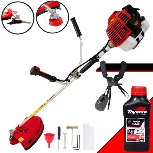 Roçadeira Lateral Kawashima KW43-L À Gasolina 2T 43cc 1,7HP Com Lâmina 3 Pontas + Óleo TOYAMA LUB FG50 500ml 2T
